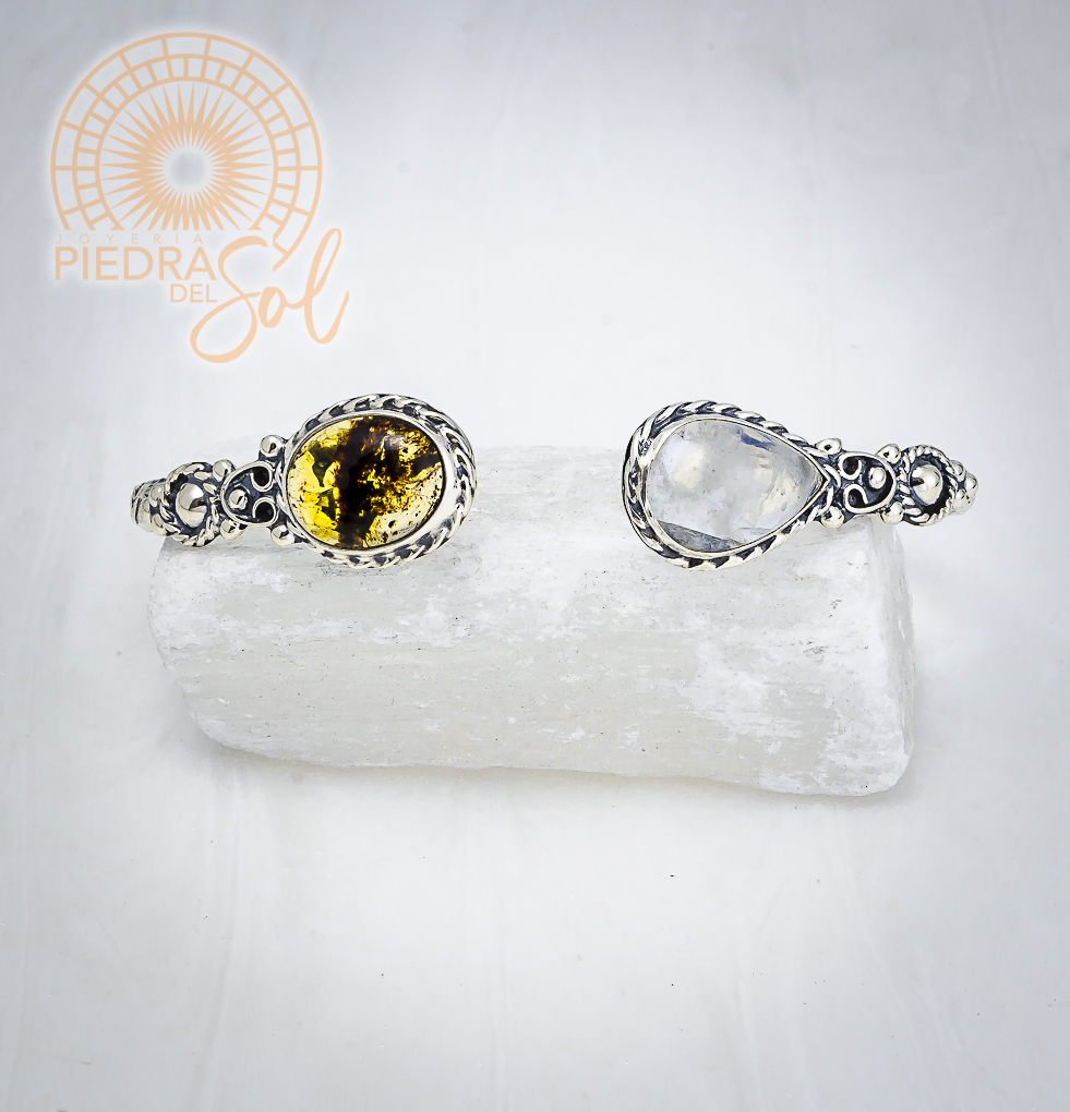 BRAZALETE AMBAR Y PIEDRA LUNAR