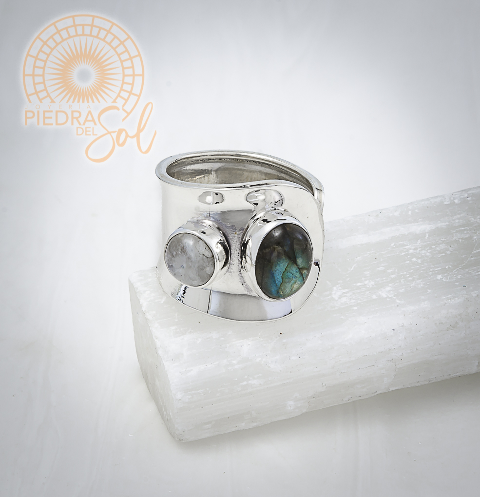LABRADORITA Y PIEDRA LUNAR ANILLO ANCHO